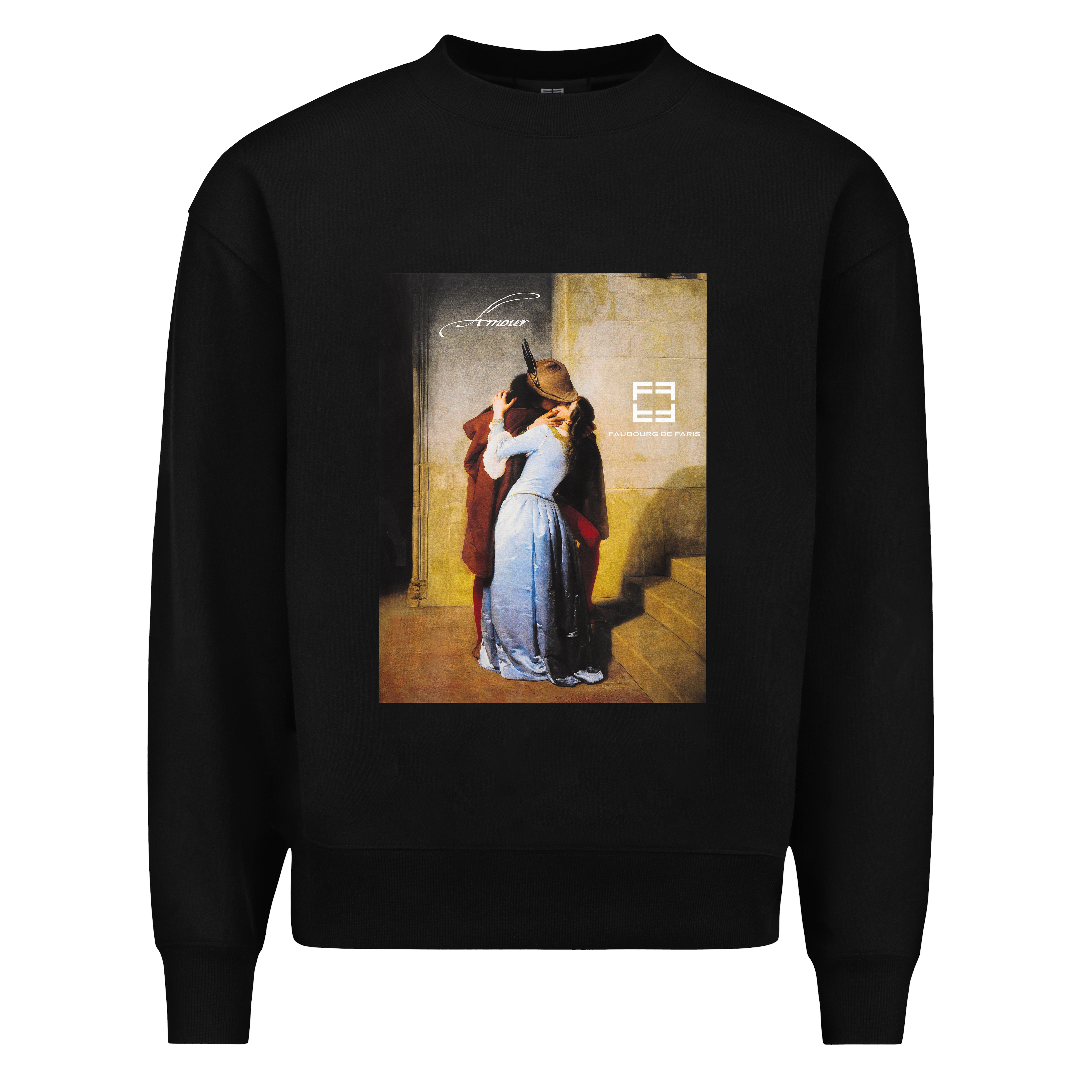FEATURING A HIGH-QUALITY SERIGRAPHY ON THE FRONT, DEPICTING THE REBEL STUDENTS OF MAY 68, A NOD TO THE SPIRIT OF THIS ERA WITH FAUBOURG DE PARIS'S ICONIC TAPE STRIPS.